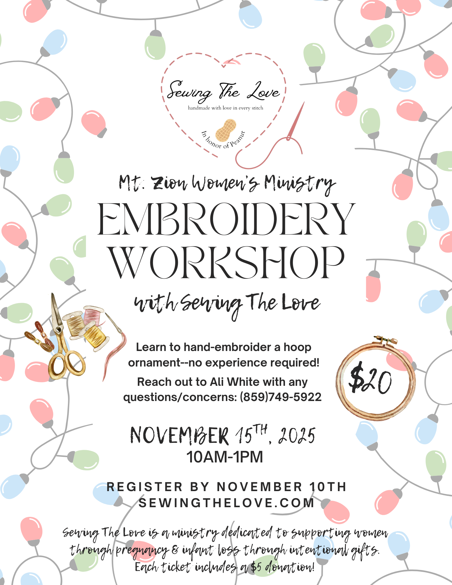 PRIVATE EVENT: Mt. Zion Women's Ministry Ornament Embroidery Workshop